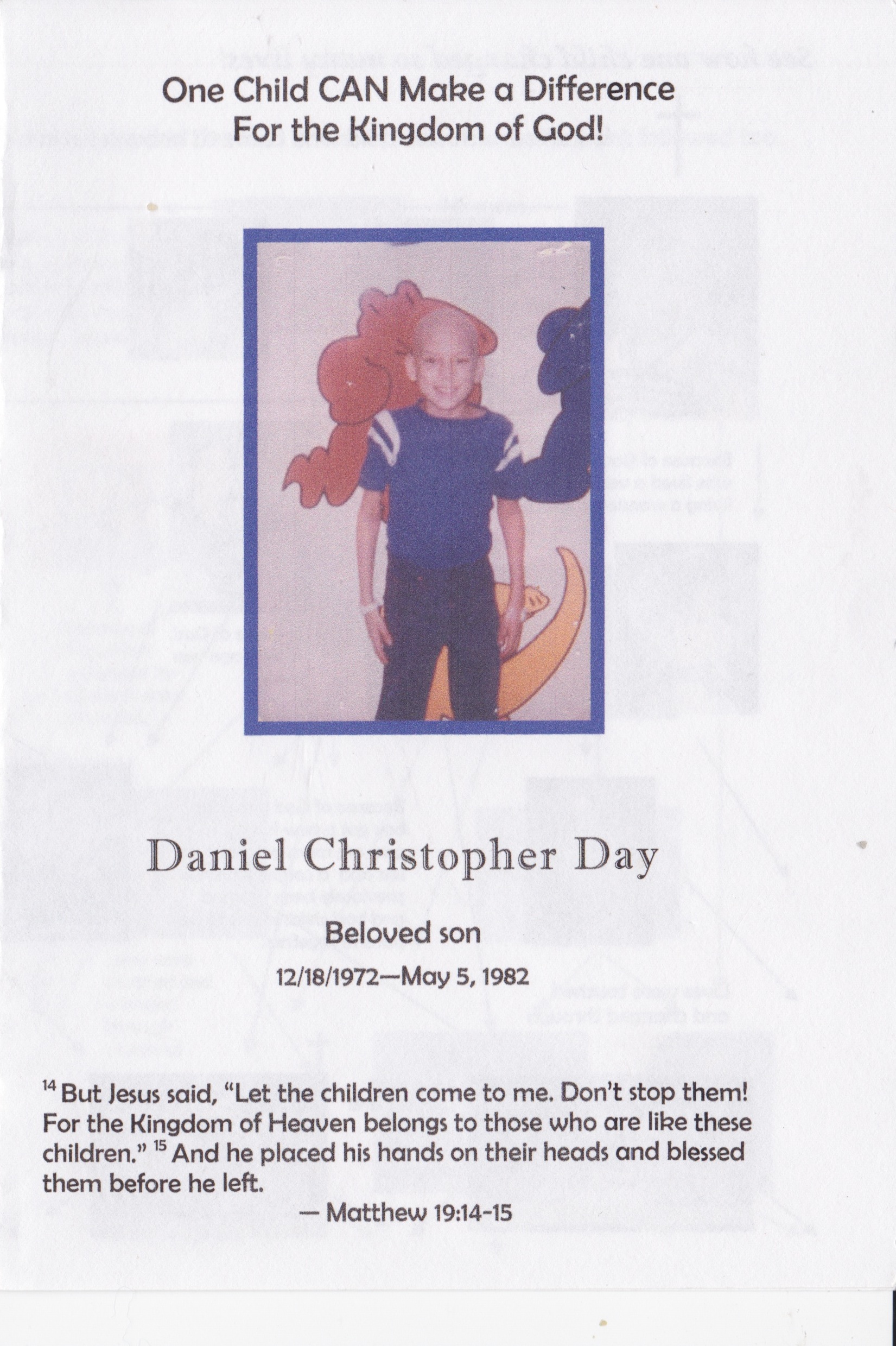 Daniel Christopher Day, December 18, 1972 – May 5, 1982